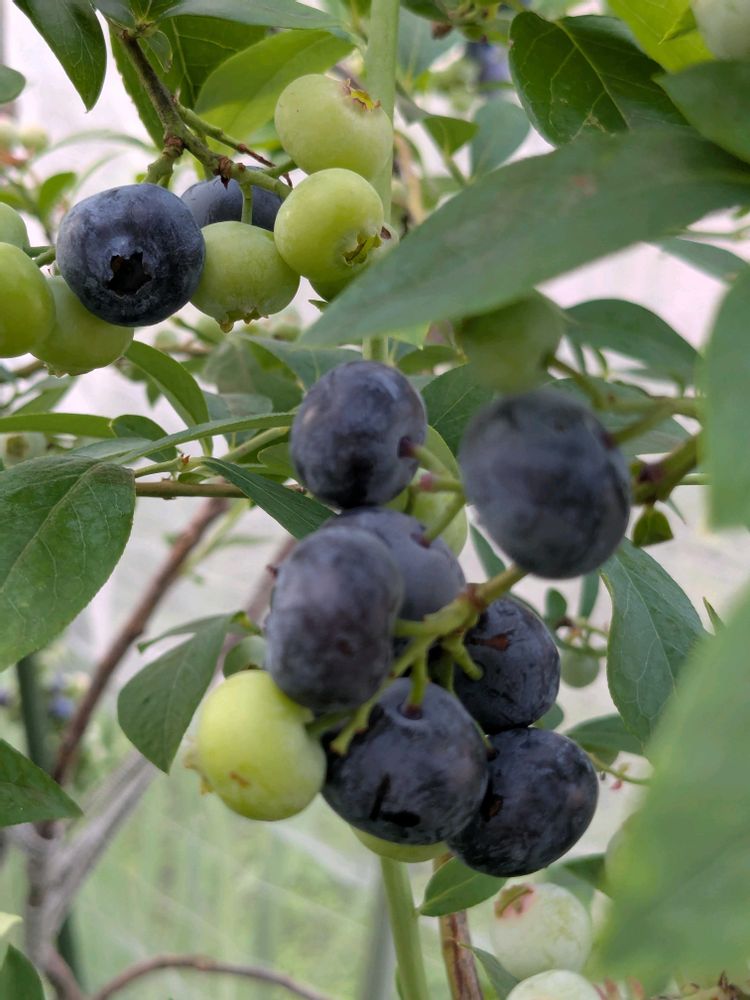 今日、家のブルーベリー🫐が美味しそうに沢山色付いてきたので収穫しました