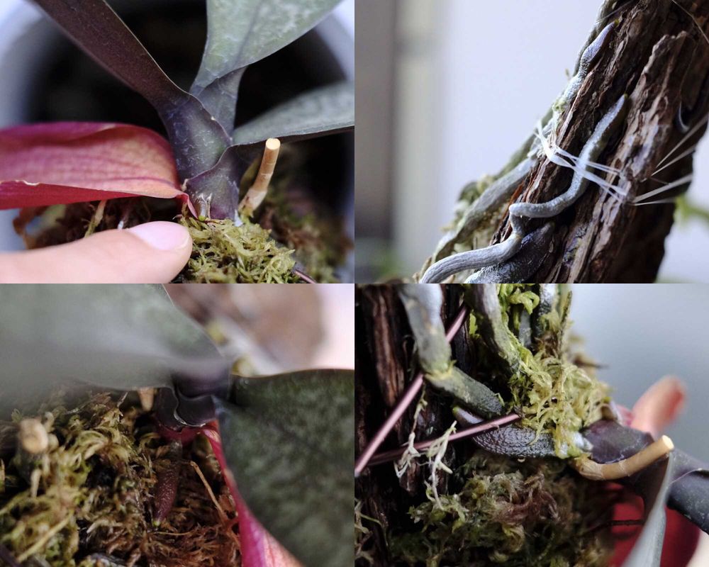 古い葉が枯れ始めるとともに、茎を突き破り3本次々と発根。