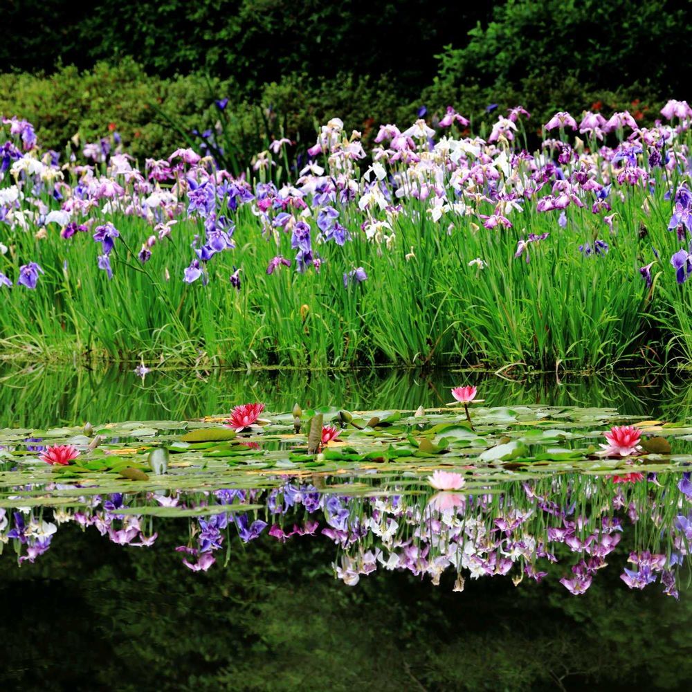 花菖蒲と睡蓮が厳かに共演されていて、さらに水鏡も素敵で、まるで絵画みたいです🤗