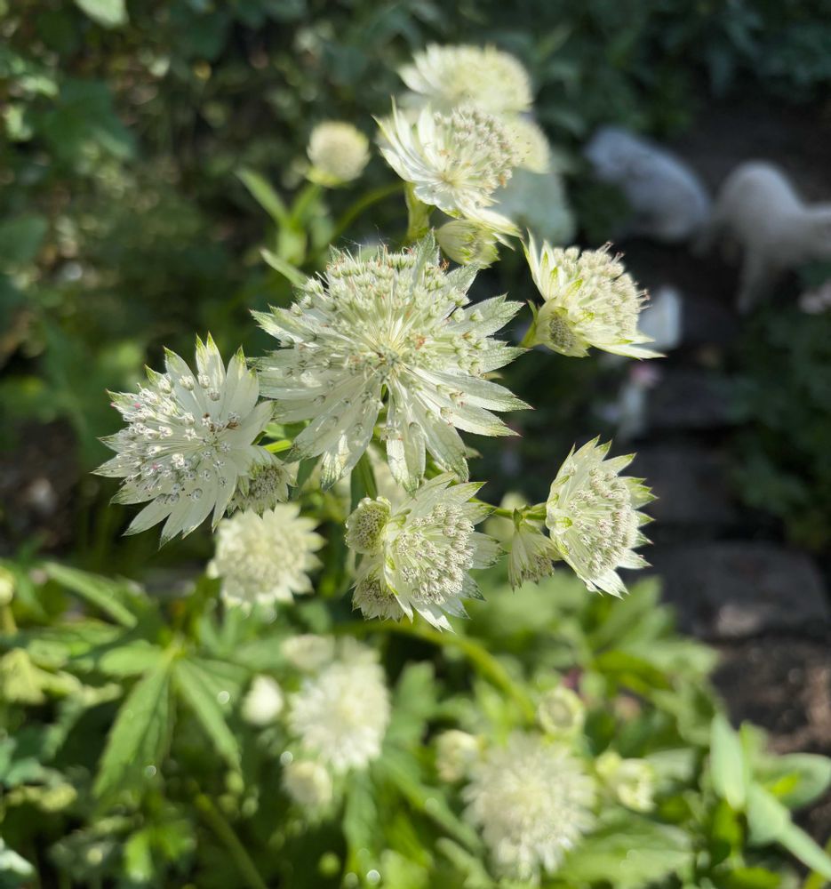 アストランティア、半日陰花壇日照2〜3時間あるかないかだけどよく咲いてくれてるよ🤍