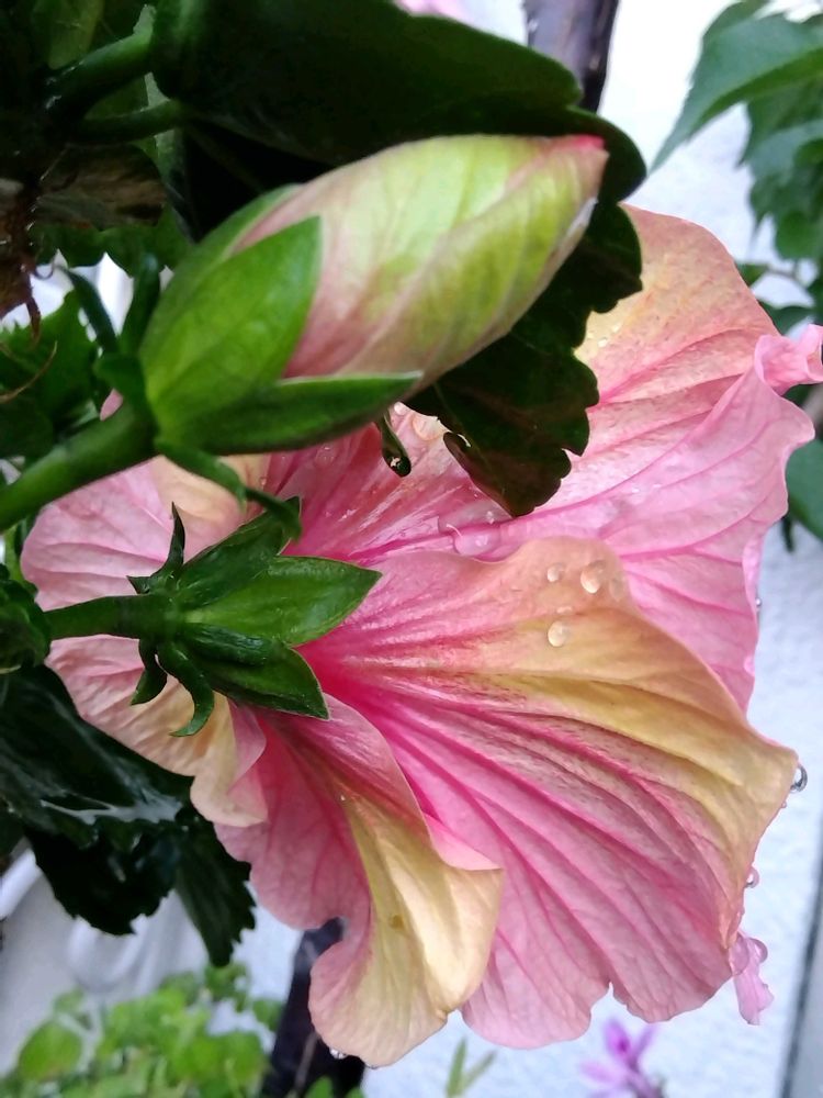 赤いハイビスカスも相変わらずたくさんの花と蕾をつけ元気を貰っています