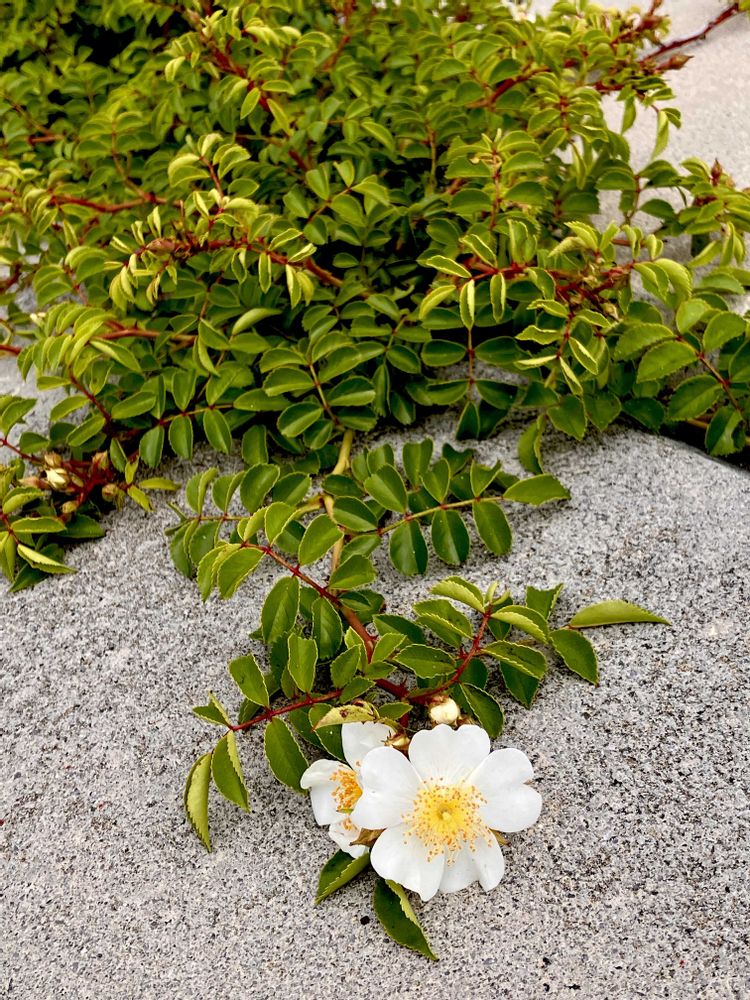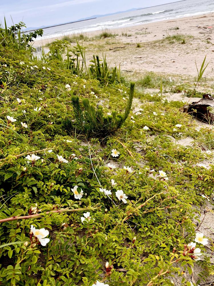 今こちらの海岸付近には、この大きめのテリハノイバラがたくさん咲いています。北限が宮城県だと言うのが信じられないので、岩手県の花友さんに聞いて見たら、やっぱり見かけないとの事🤔