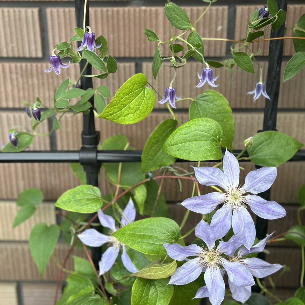 最後、玄関前のクレマチス小さいベル型がかわいいです。