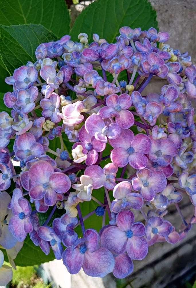 渦紫陽花ー花びらの形がもこもこしていて、可愛いらしいですね。青紫🪻のイメージがありますが、いろいろな色があるんですね。