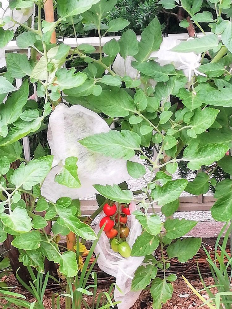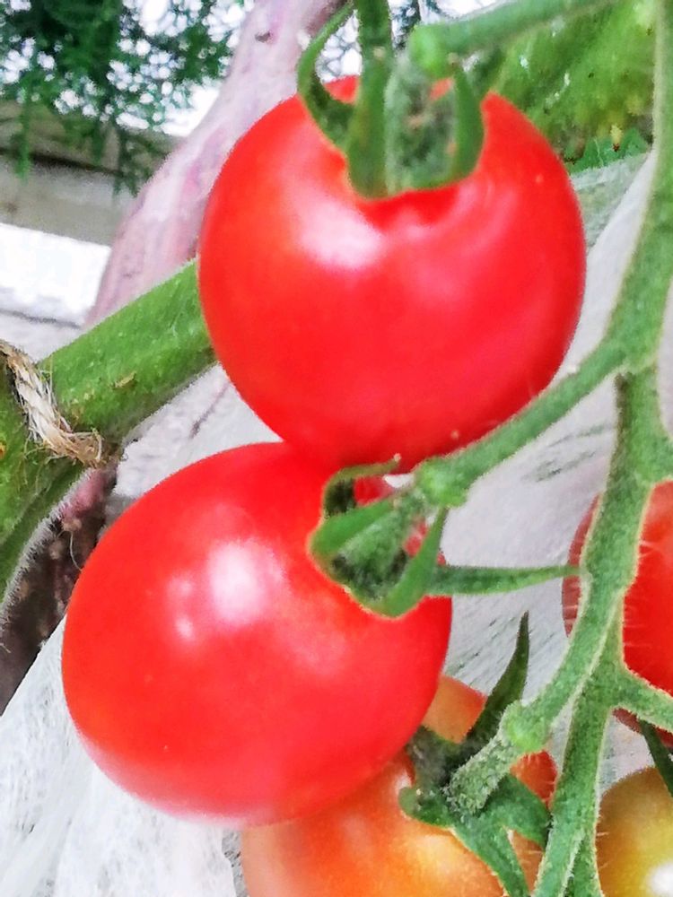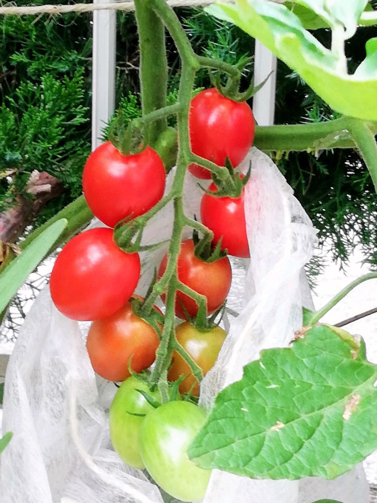 庭のミニトマトアイコのネットを外したら良い感じに🍅🤩