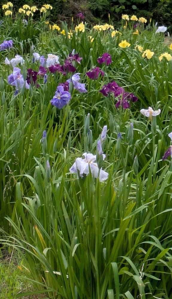一方で、近くの休耕田に持ち主が楽しみのために植えておられる色とりどりのハナショウブは満開で、そろそろ終わりの時期を迎える🩵♡💛