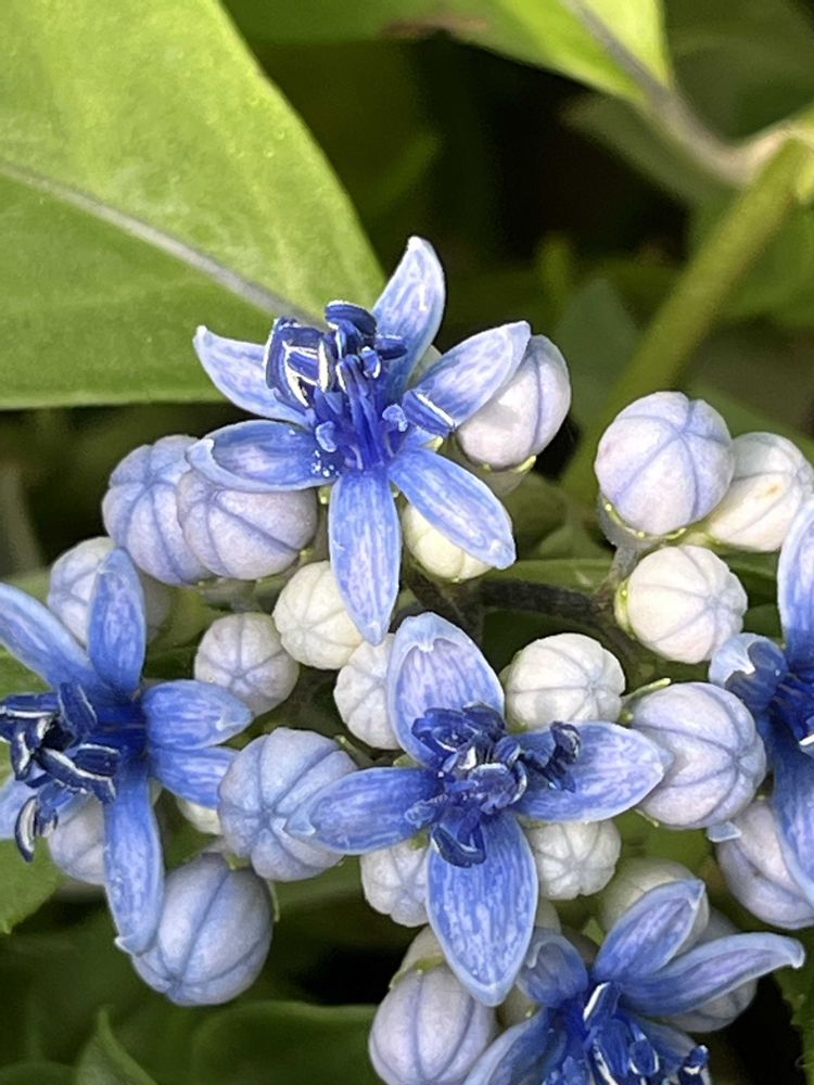 ③今年良く咲いてくれる隅田の花火ほんのりブルー🩵に、ソフォラ・リトルベイビーと。