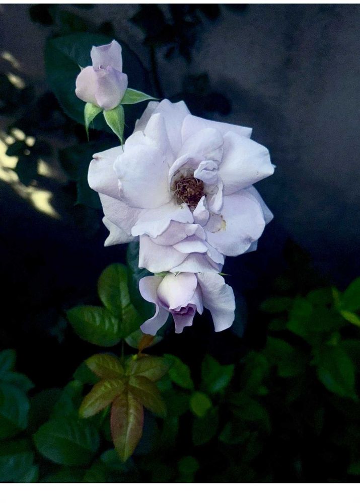 📝昨日投稿していますベランダで植栽養生中の「ブルー・バユー:Blue Bajou」の薔薇が3個とも開花しました。