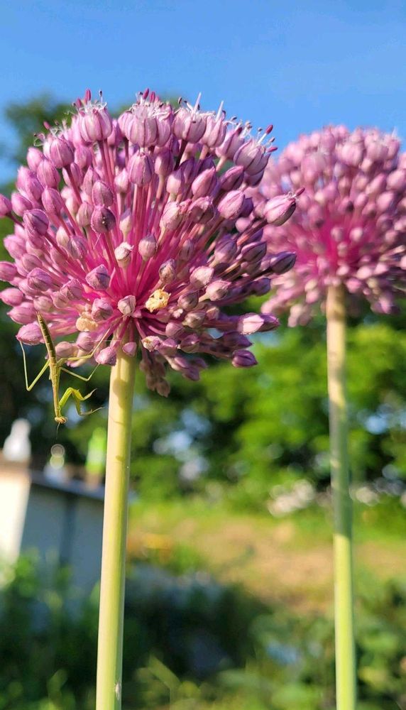 ニンニクのお花に小さなカマキリが👀✨ニンニク🧄🌸