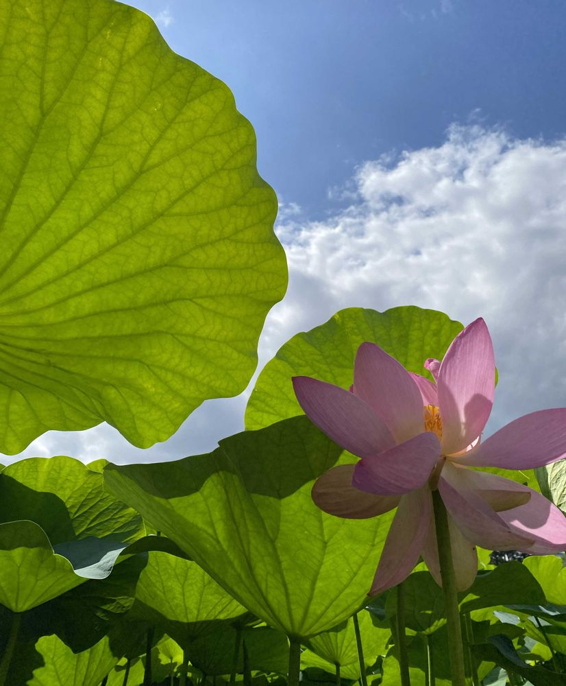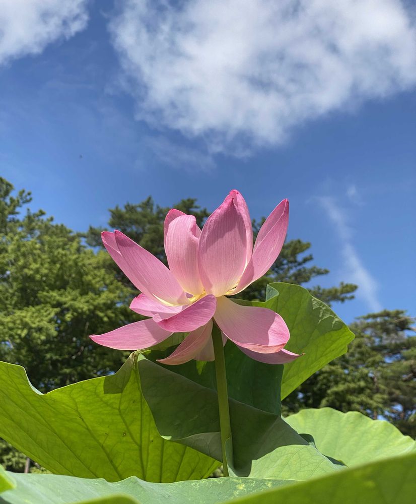 でも青空の中、美しい蓮の花見えて、良かったですね。