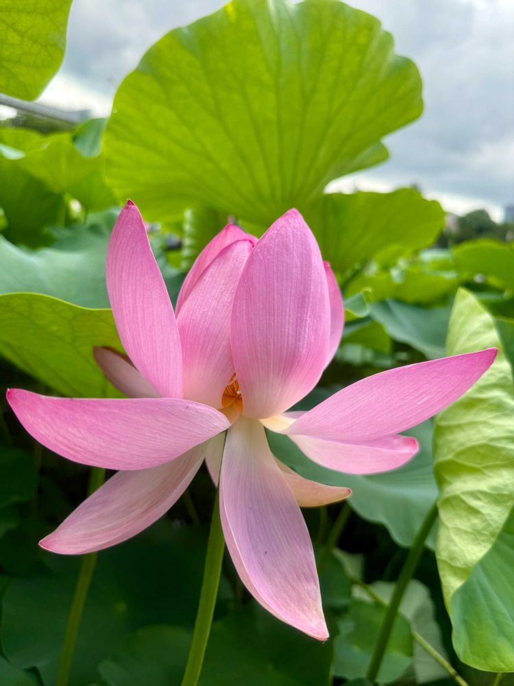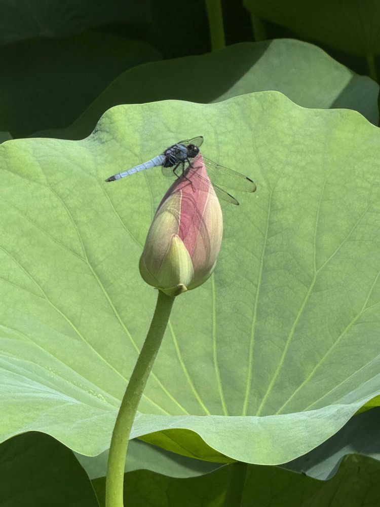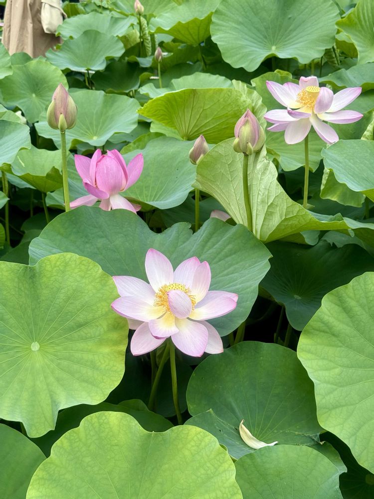 千葉公園で、たくさん大賀蓮が咲いてました🪷暑いけど、ピンクと緑に癒されます。