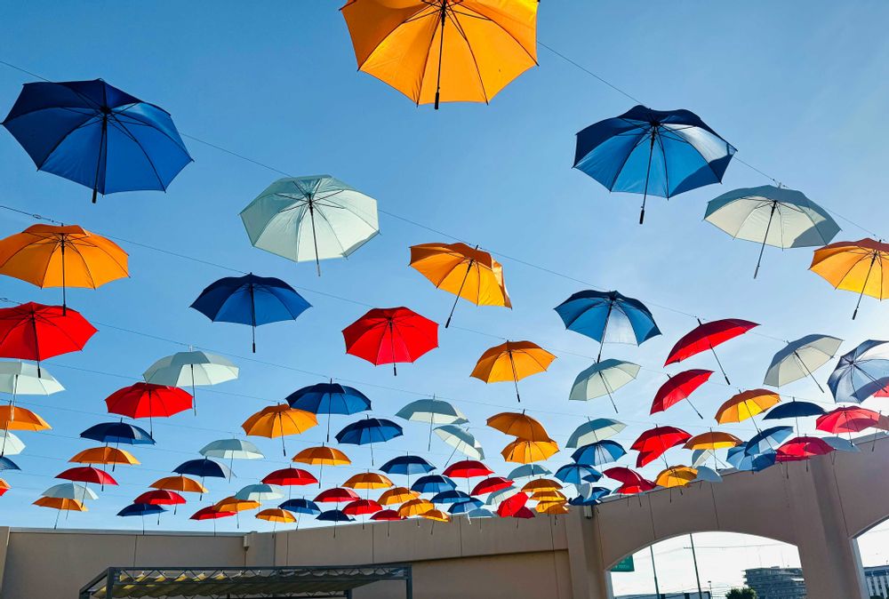 最近行ったショッピングモールの傘アート2つ☂️☂️☂️☂️と