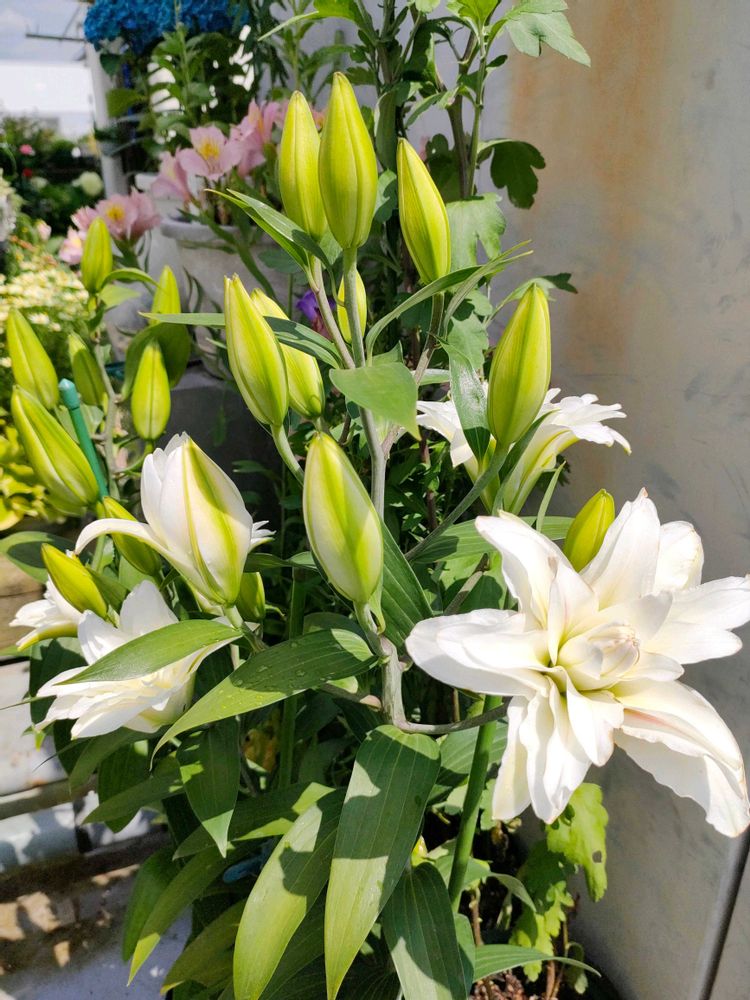 毎日花数が増えてきている、オリエンタルリリー💛🤍さん💕