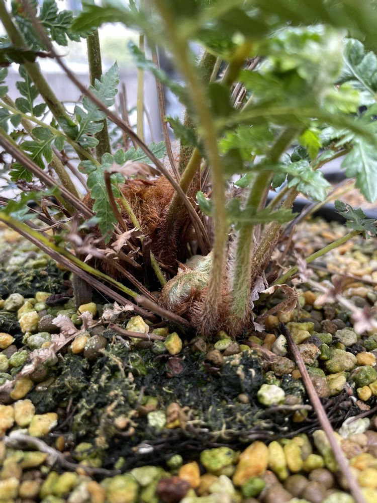 ディクソニアアンタルクティカは少しここだと暑いので場所移動、幹が上がって来ました、約3センチ💦