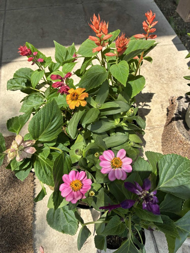 ③カルチャーセンターの帰りにお花屋さんで見つけたサルビアとジニア。少しくすみカラーかな、と思って連れて帰りました。