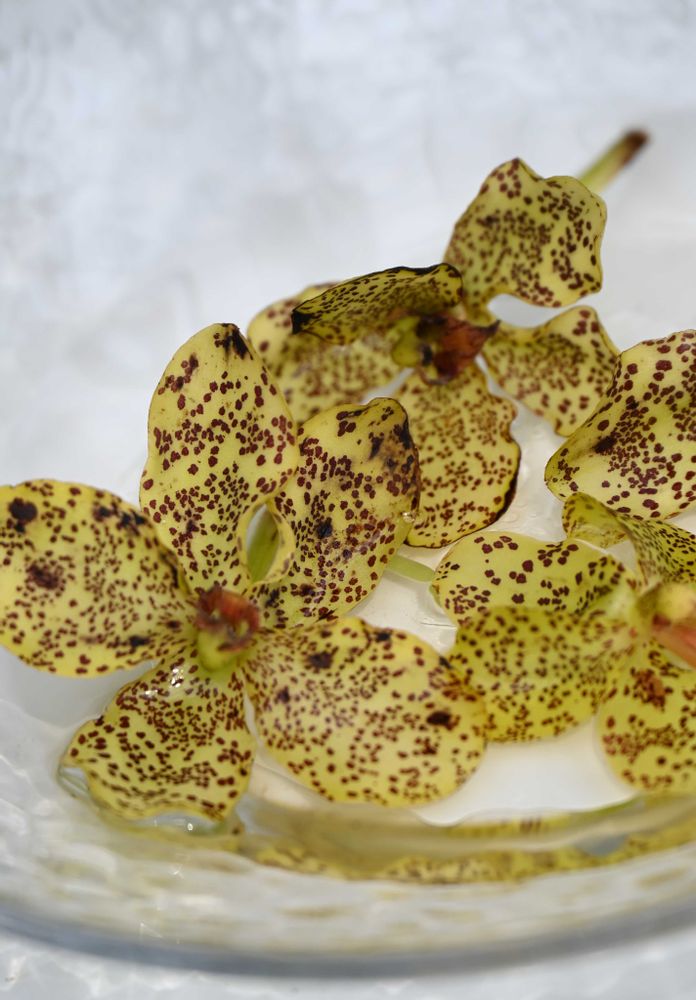 グラマトフィルム・パンテリヌムが、国立科学博物館 筑波実験植物園 水生植物温室で満開を迎えています。