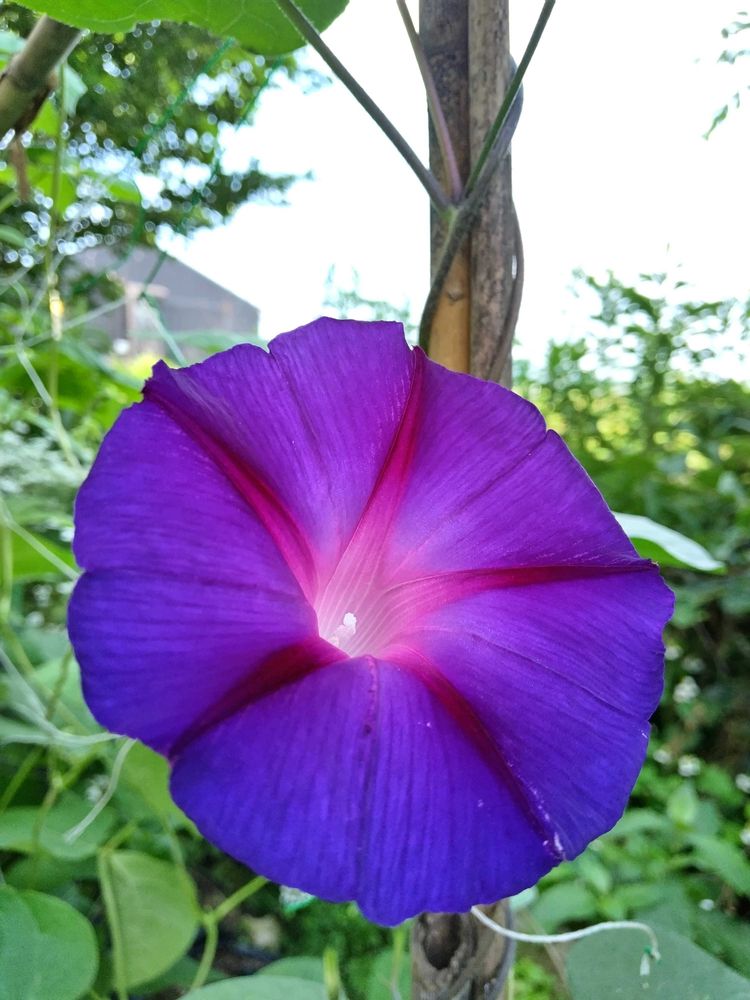 💙こぼれ種からの朝顔、深いブルーが素敵です。