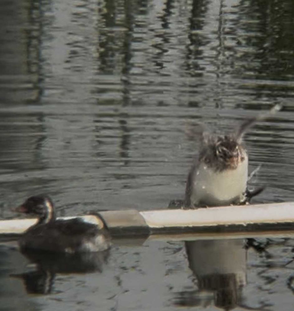 2枚目 そのうちの1羽が、目の前の管に飛び上がろうとしているようで😳