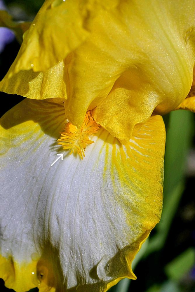 他に 被写体が 手に入らず 申し訳ありません🙏が、「イチハツ(一初)」と言う アヤメ科アヤメ属が あるのですが、この花の 外花被片の基部には、白色の『トサカ状』の 突起物が あります。