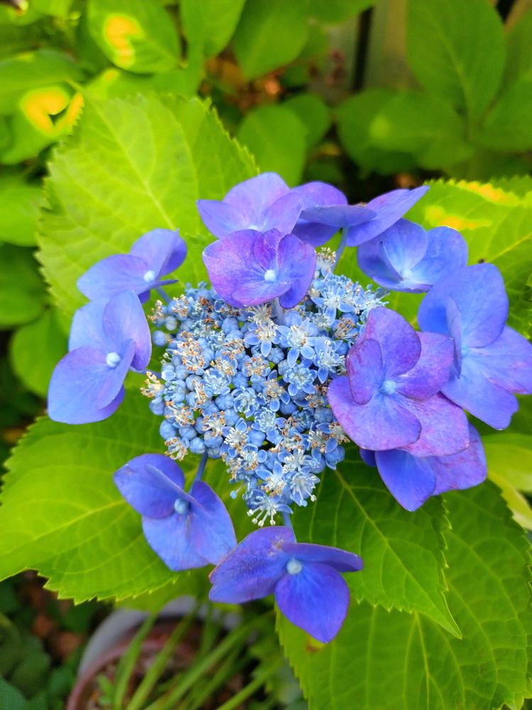 ①②ブルーのガクアジサイは一輪だけ、・・・😅💦💦💦