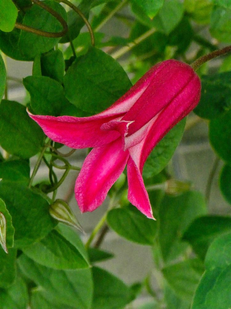カチコチ花壇のクレマチスロウグチタイプ、プリンセスダイアナの1番花💕