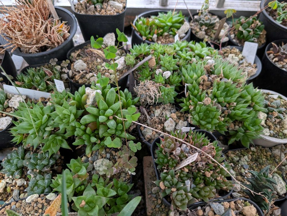⚫サボテン、アロエ、塊根など。 ⚫たまに「いいね」押してます。 --------------------------------------------------------- 【19.08】19年8月頃から徐々に多肉植物・サボテンの魅力に取り憑かれてしまいました。 【19.10.22】グリーンスナップを始めました。 【21年~22年】冬越しをほぼ室内避難しないチャレンジ。 【我が家の多肉植物・サボテン・観葉植物】220506時点 662/878 【セダム】3/6 ×春萌(19/11/3) ×プロリフェラ(20/2/1) ×薄化粧(20/2/5) ・※虹の玉(20/2/6) ・※虹の玉?乙女心?(20/2/6) 6・※黄麗(月の王子)(20/3/5) 【チレコドン】2/5 ×ブッコルジアヌス(19/11/3) ×スカエフェリアヌス 群卵(20/3/4) ×万物想(レティキュラーツス)(20/9/4) ・万物想(レティキュラーツス)②(20/10/2) 5・ワリチー(20/10/8) 【クラッスラ】10/17 ・天狗の舞(19/11/3) ・紅稚児(19/11/3) ×姫花月(19/11/3) ・テトラゴナ(19/11/12) ・火祭り光(19/12/4) ×花月錦白斑(19/12/4) ×※花月(金のなる木)(19/12/12) ・神刀錦(20/1/8) ×キムナッキー(20/1/10) ×10・※メセンブリアンセモイデス(ラージフォーム)(20/1/23) ×※花月?黄金花月?⇒火祭り錦?(20/1/23) ・巴(20/2/27) ・※火祭り(20/3/5) ・ゴーラム(20/12/16) ・神刀(20/12/24) ×アイボリーパゴタ(20/12/24) 17・spトランスバール ドラケンスバーグ(20/12/24) 【カランコエ】1/19 ・錦蝶(19/10/19) ×不死鳥錦(19/10/24) ×カーニバル(19/12/4) ×※月兎耳?(19/12/26) ×唐印(19/12/28) ×テディベア(20/1/10) ×ファング(20/1/11) ×ミロッティー(20/1/23) ×※黒兎耳?月兎耳?(20/2/6) ×10・※胡蝶の舞(20/2/6) ×星兎耳(20/2/12) ×ゴールデンバニー(20/2/12) ×福兎耳(20/2/12) ×姫黒兎耳(20/2/19) ×※シナモン?孫悟空?(20/2/19) ×キューエンス(20/2/19) ×※月兎耳(20/2/20) ×黒兎(20/2/20) 19×シナモン(20/2/21) 【センペルビウム】13/17 ×巻絹(19/9/6) ・パシフィックナイト(19/9/14) ・※百恵(19/12/12) ×※高嶺の華(19/12/12) ・※綾桜(19/12/12) ・※ファイヤーバード?パルグラム?(19/12/12) ・※レッドチーフ?ウラヌス?(19/12/12) ・※シャンハイローズ?(20/2/4) ・※神風?(20/2/4) ×10・※綾桜?(20/2/4) ・※麗人盃?(20/2/4) ・※雪牡丹?(20/2/4) ×※紅牡丹?(20/2/4) ・※ラウンドシーン?(20/2/4) ・※巻絹?(20/2/6) ・レッドベル(20/2/19) 17・※ご近所さん(20/5/17) 【ガステリア】39/43 ・春鶯囀バテシアーナ(19/11/20) ・グロメラータ(19/11/20) ・臥牛(19/11/20) ・リリプターナ(子亀姫)(19/11/20) ・白星竜(ベルコサ)(19/11/20) ・錦沙戸宝(19/11/20) ・ニティダ(19/11/22) ・フロッキー(19/11/22) ・姫子宝錦(19/11/24) 10・虎鉾(19/11/24) ・富士子宝錦(19/11/26) ・照姫(19/11/27) ・恐竜×大桑臥牛(19/11/29) ・颯々の松(19/11/29) ・ドラゴンスキン(19/12/2) ・名前不明⇒グリーンワイパー(19/12/4) ・黒鶯囀(19/12/4) ×臥牛錦 糊斑(19/12/4) ・白臥峰ダルマタイプ(19/12/4) 20・バイリシアナ×グロメラータ(19/12/10) ・ピランシー錦※斑多め(19/12/24) ・ピランシー錦※斑少なめ(19/12/24) ・臥牛竜(19/12/24) ・グラキリス(虎の巻)(19/12/25) ・ホワイトパール(20/1/7) ・白銀水牛(20/1/7) ・エクセルサ(20/1/8) ・ダルメシアン(20/1/10) ・タワー(20/1/23) 30・クロチェリー(20/1/23) ×ニグリカンス f.dark monstrosa(20/2/27) ・金剛殿(20/2/27) ×ラウリンソニー(20/3/13) ・幅広ピランシー(20/4/7) ・恐竜×白点臥牛(20/4/7) ・恐竜(20/11/9) ・ラウリンソニー②(20/11/19) ・恐竜②(21/1/12) ・恐竜×春鶯轉(21/1/13) 40・ホワイトパール②(21/1/13) ×ラウリンソニー③(21/2/10) ・エレフィアエ(21/4/13) 43・臥牛②(21/6/14) 【ディッキア】49/52 ・ハイブリッド(19/11/6) ・(アリソナ×マルニエルラポストレイ)×ボーン(20/2/21) ・アリゾナ(20/3/13) ・ニッケルシルバー(20/3/13) ・縞剣山錦(20/3/18) ・(ケリー×マセドイ)×ヘブディング ビッグブルーF1(20/3/24) ・ターザン(20/7/15) ・ゴエリンギー(20/7/15) ・エステベシー(20/7/16) ・グランマルニエル スノウ(20/8/21) ・ダウソニー(20/9/9) ・コリスタミネア パープルフォーム(20/9/16) ・マイケルアンドレス(ブリットルスターF3)(20/9/16) ・ゴエリンギー レッドクローン×ターザン(20/9/18) ・ターザナ(20/9/18) ・レッドボーン×スカイウォーカー(20/10/27) ・グランマルニエル(20/11/4) ・トゥーシ―F2(シルバークローン)(20/11/4) ・グレイオプス(20/11/5) 20・タイニーレッド×ヘブンアンドヘル(20/11/5) ・マルニエルラポストレイ エステベシー シーディング ブラジル(20/11/5) ・(レッドシャーク×ディストーション)×ジョーズ(20/11/5) ・ブラックアイス(20/11/6) ×ダウソニー×ガーネットクロウ(20/11/12) ・デリカータ(20/11/18) ・エステベシー×ゴエリンギ―(20/11/30) ・ゴエリンギーOPS セレクト ホワイト(20/11/30) ・(ソウフィッシュ×7a)×ターザン(20/11/30) ・ベアテアエ レッドクローン(20/12/07) 30・アリゾナ×HU-5(20/12/08) ・エステベシー②(20/12/08) ・ダコタ(20/12/09) ・マルニエルラポストレイ(20/12/10) ・エステベシー×ブリットルスターF2(21/1/8) ・マウンテンオブニードルズ(21/1/14) ・エステベシー③(21/1/27) ・パラファット(21/2/10) ・ジョーズ×ドナマリエ(21/3/15) ×フォステリア×エステベシー(21/3/15) ×40・フォステリア×エステベシー②(21/3/15) ・カタナ(21/3/24) ・スノーストーム×ブライヤーパッチ(21/3/24) ・ワサビ(21/4/7) ・ブラックアイス②(21/4/12) ・ブラ