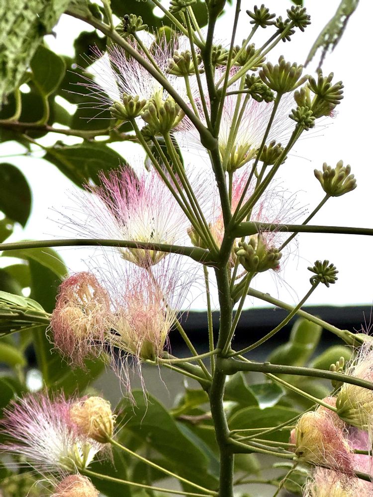 自生のネムノキより蕾もお花も多い気がしますがお庭のですか?