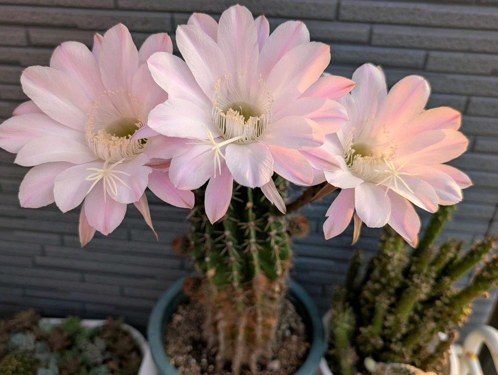 ゴツゴツトゲトゲの見た目から、こんな繊細な優しい色の花を咲かせるなんて、サボテンの魅力は計り知れませんね🥰
