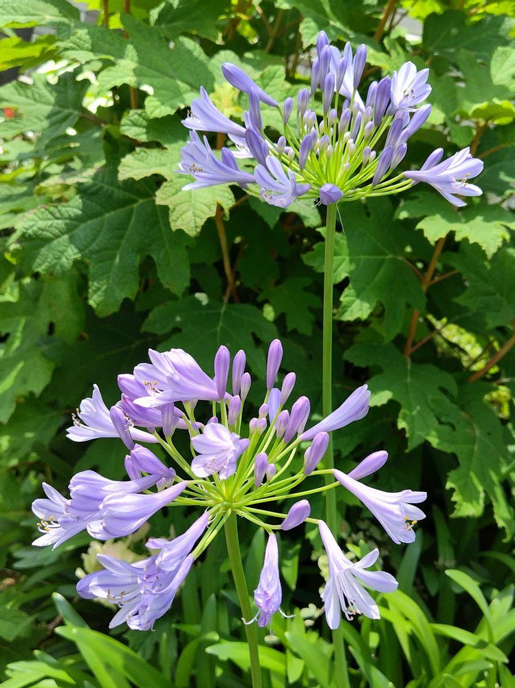 アガパンサスの涼やかな立ち姿、緑の中に爽快な紫色が目を引きますね✨