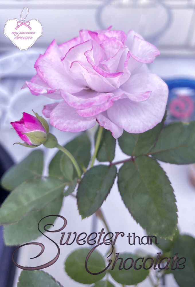 💖夕方の華…パープルピンクの花びらに…ヒラヒラ縁取りにピンクLINE🌹乙女心…名の通りso cute♥️GSを一年素敵に過ごせたご褒美4月に3280円でGETした薔薇さん♪(๑ᴖ◡ᴖ๑)♪😅高いのか安いのか?…l don’t know❣️