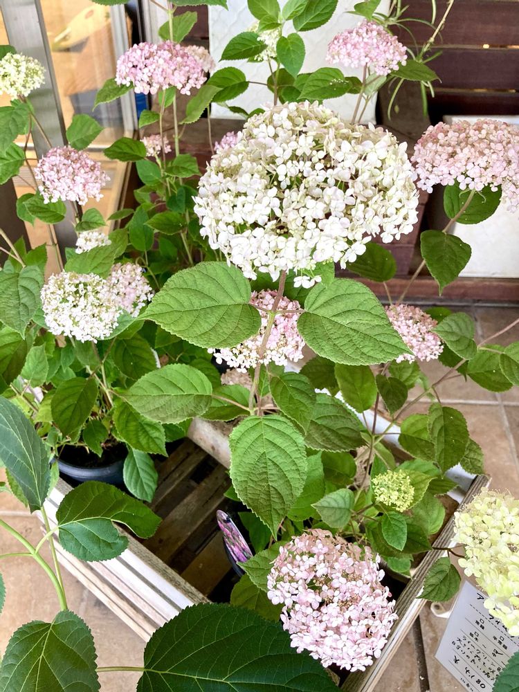 「アメリカ アジサイ ライムのアナベル」が花屋の店先に並んでいた。