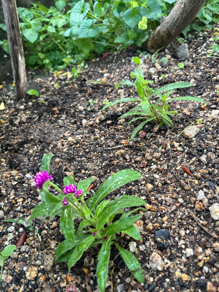 いただいたセンニチコウを地植えしました。奥にアメジストセージ、外で冬越ししたアボカドも3年目を迎えたので、きっと根付いてくれると思います♪