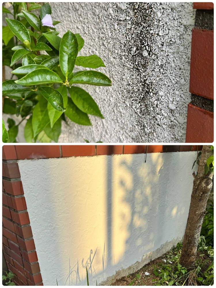 30年以上経っているレンガ塀の裏側は黒ずんで無惨な姿になってしまいました💦