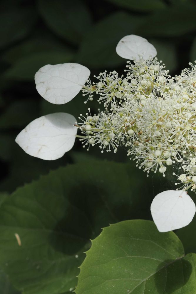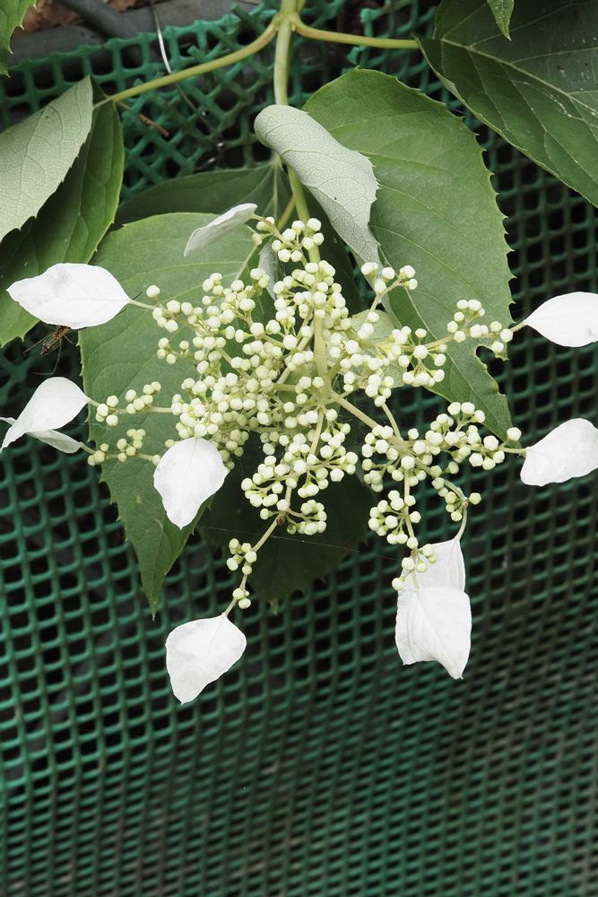 一昨日、ツルアジサイの葉っぱを投稿しました。で、近くにこのイワガラミがあるので葉っぱを見てこようと思えば、もう花も咲いてるんですね!