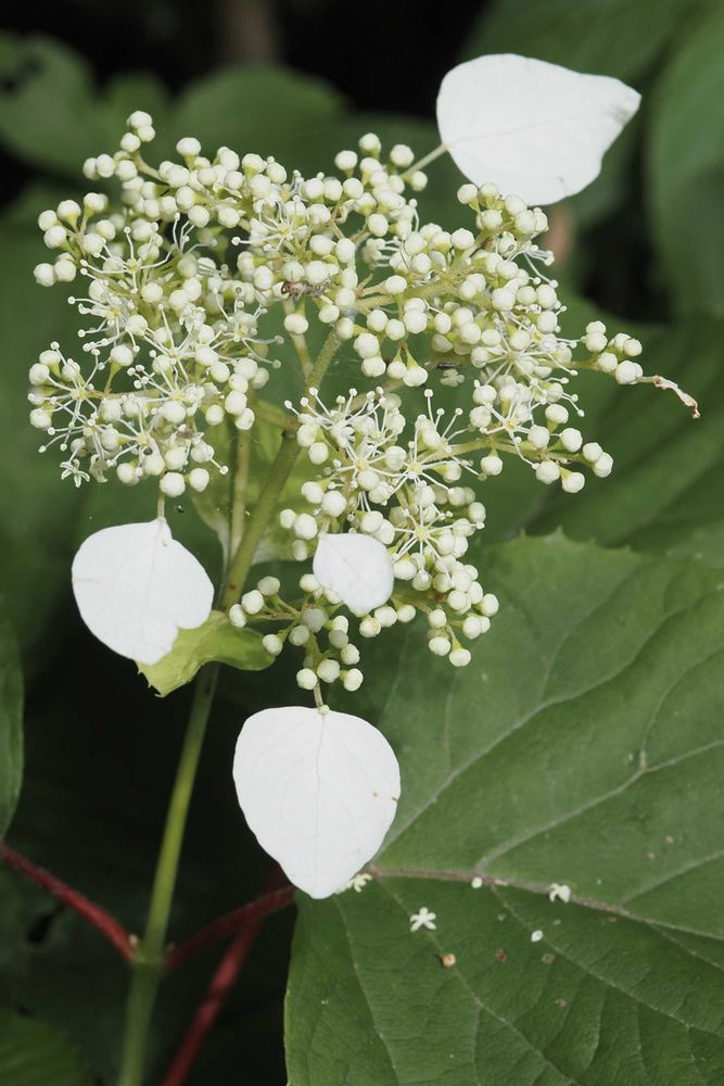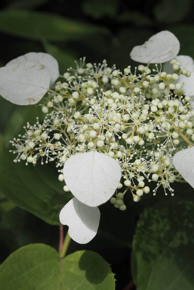 イワガラミ(岩絡み)アジサイ科イワガラミ属の落葉つる性木本。別名はユキカズラ。属は違うけど極近縁。以前はアジサイ属でした。