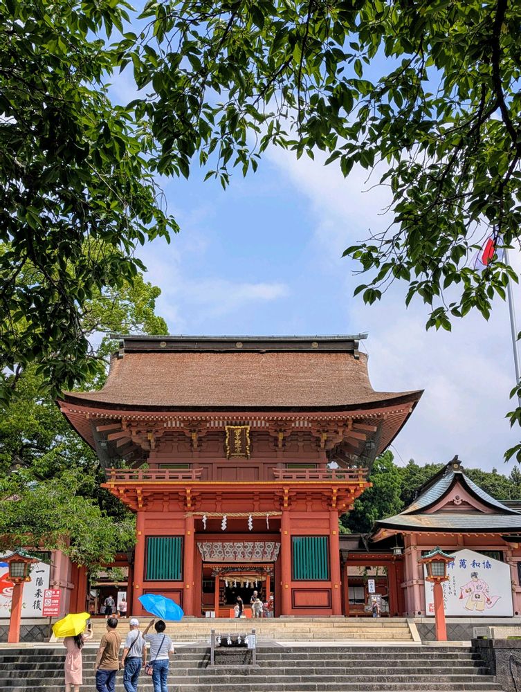 楼門前の外国人の鮮やかな色の日傘も映えてます😊
