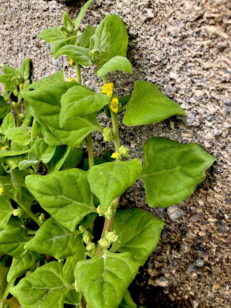 葉腋から黄色い花を咲かせるが、花弁は無く萼が4〜5裂して開花する。