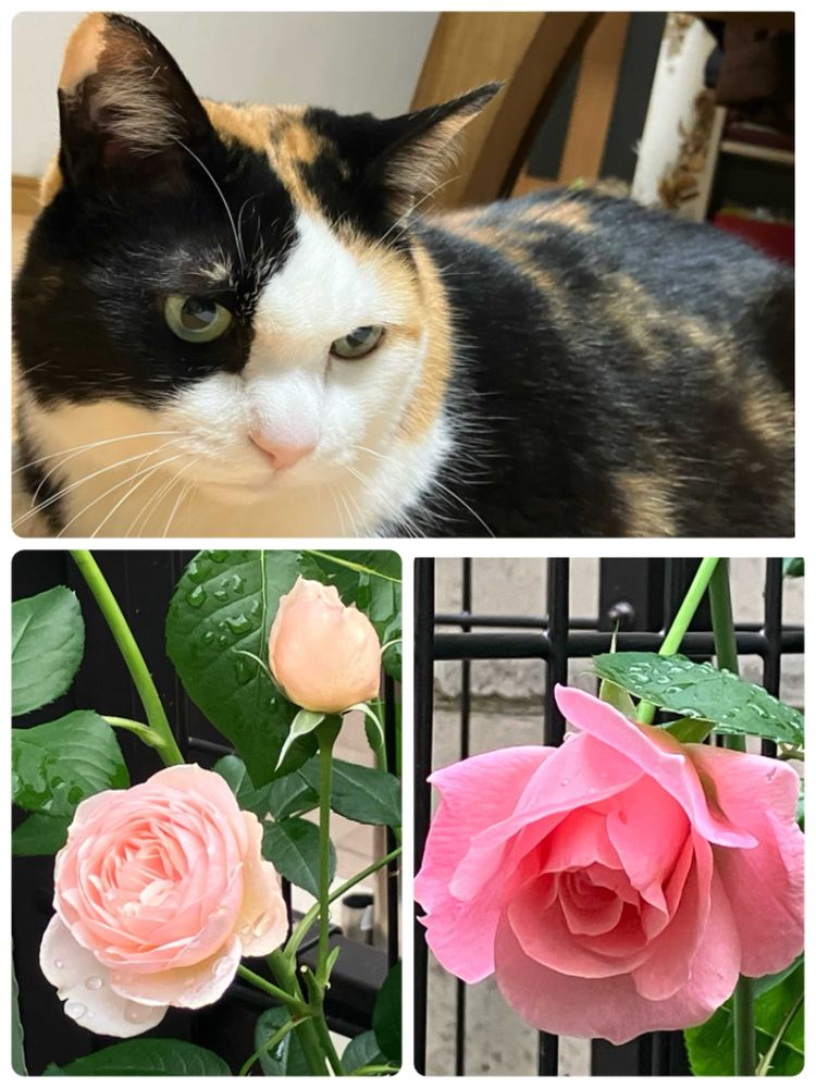 ピンクの美しい薔薇がお似合い🌹😺💕