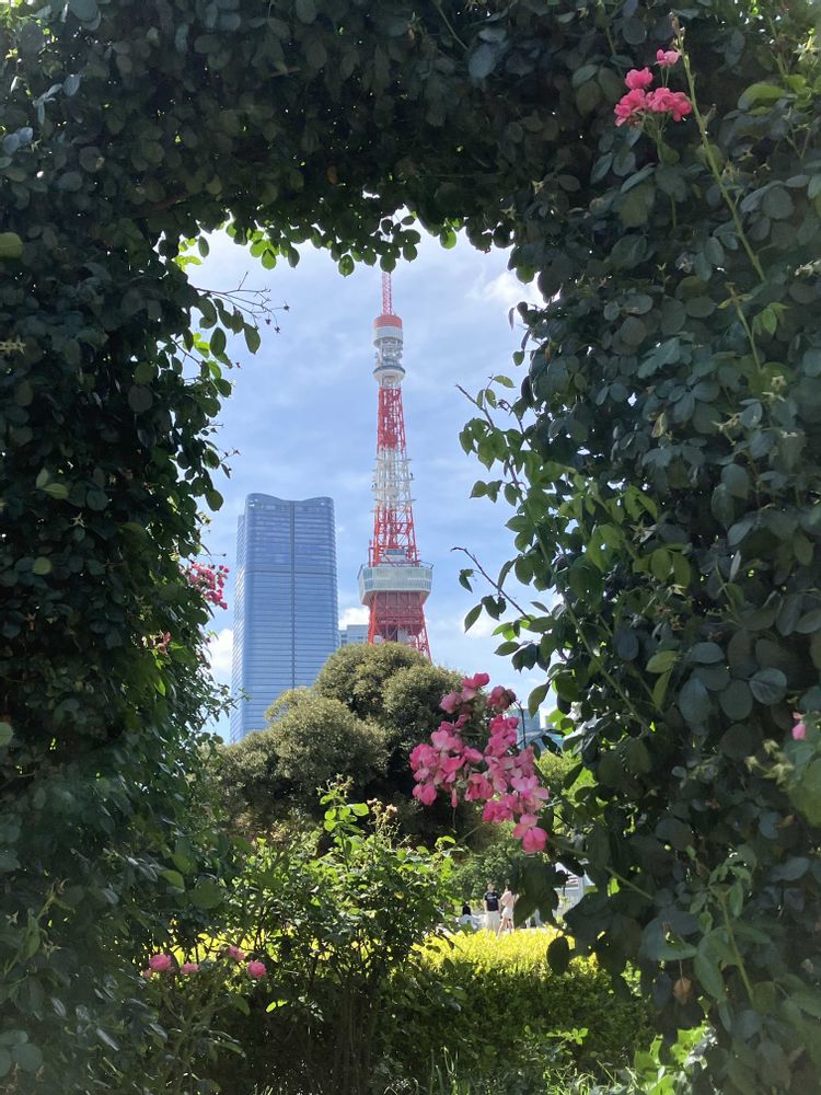 つるバラのアーチの中に見える東京タワー🗼🌹 なかなかの絶景でしたよ〜
