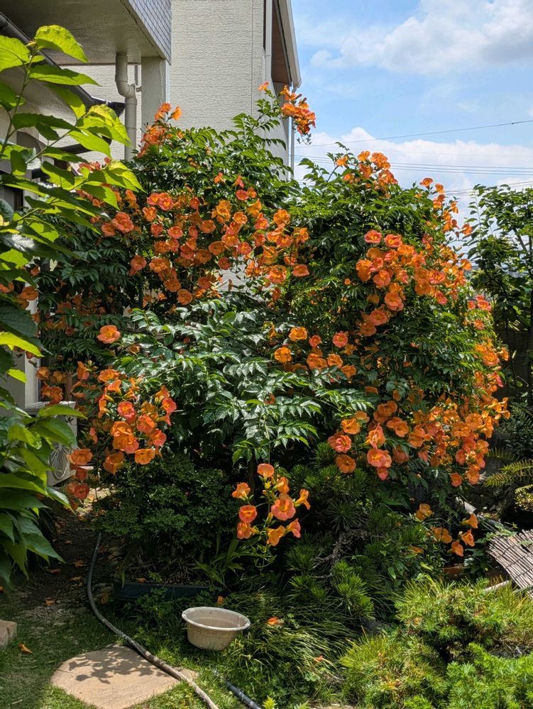 ノウゼンカズラ ご近所の家庭園芸士さんのお宅です。