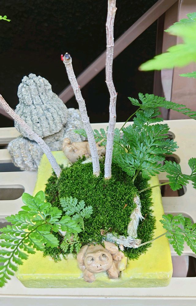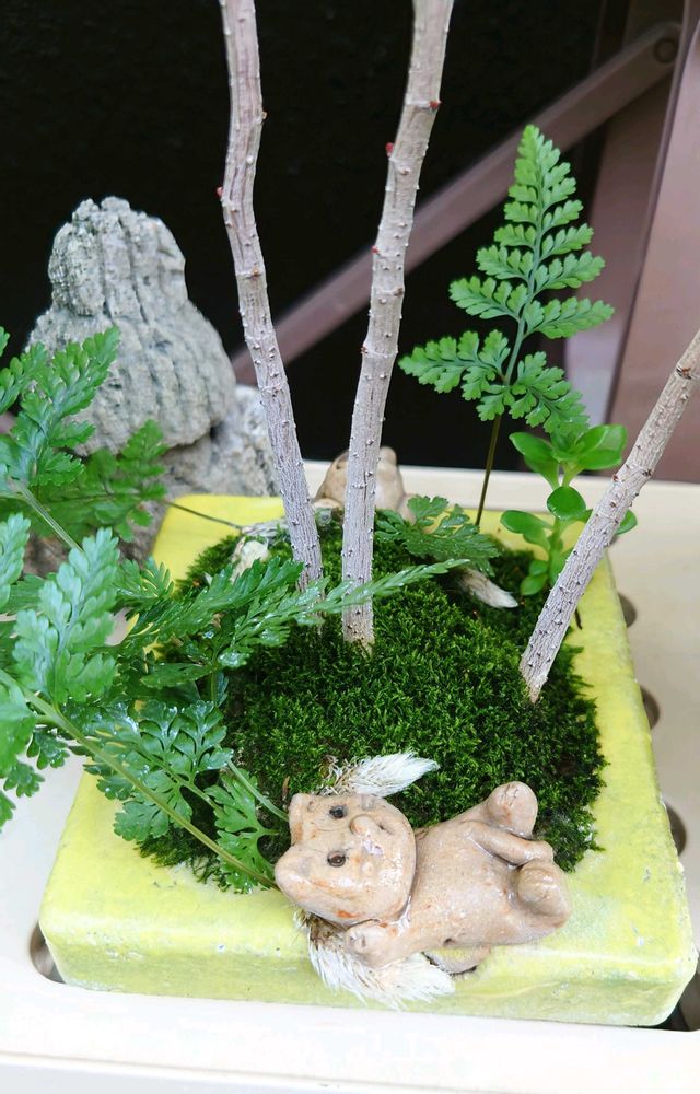 ハゼのミニ鉢に猫手シノブ挿してたら