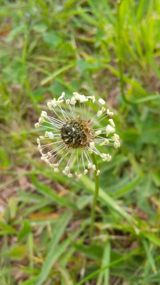 綺麗な真ん丸に咲くヘラオオバコの花を見つけました 要注意外来生物に指定されているようですが この花のように世の中も円くありたいものです