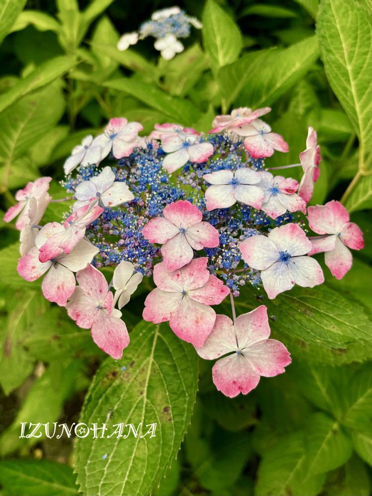 白い装飾花に紅絞りが入って、、、