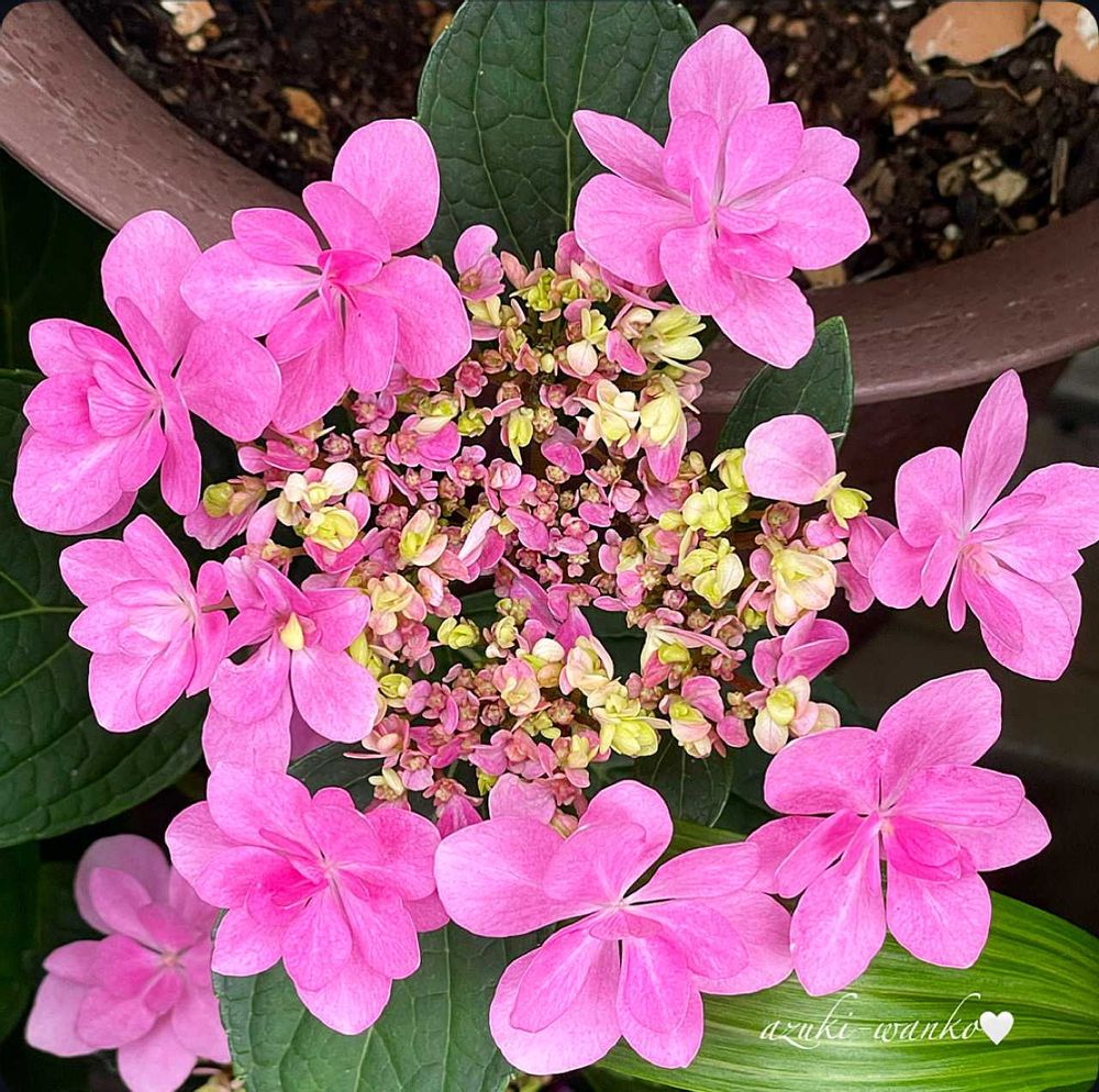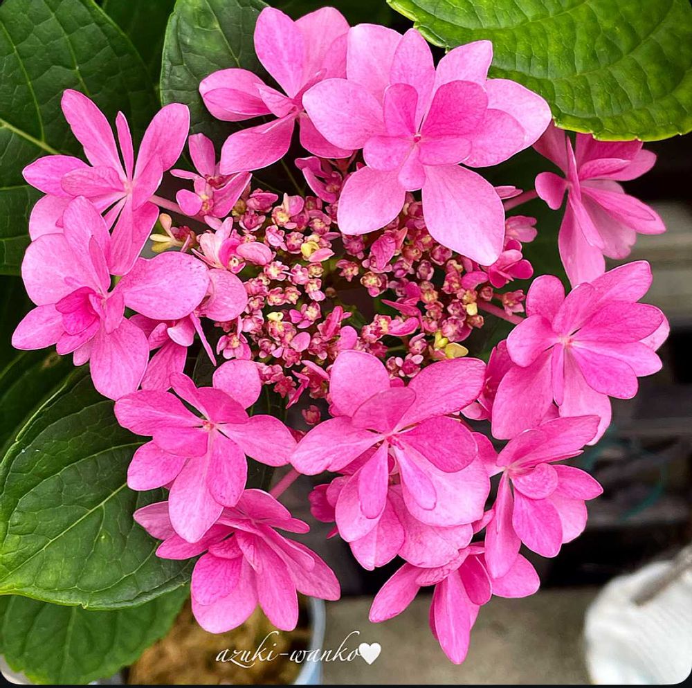 ガクアジサイ(学名: Hydrangea macrophylla 英名: Hydrangea、Lacecap hydrangea 和名:額紫陽花)の花🌸🌿🌺
