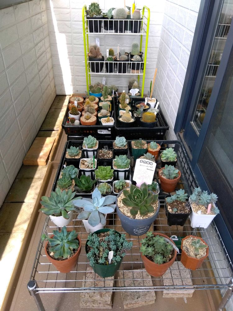 洗濯干しにくいが雨除け、日除けありエリアは多肉ちゃんのエリアだね