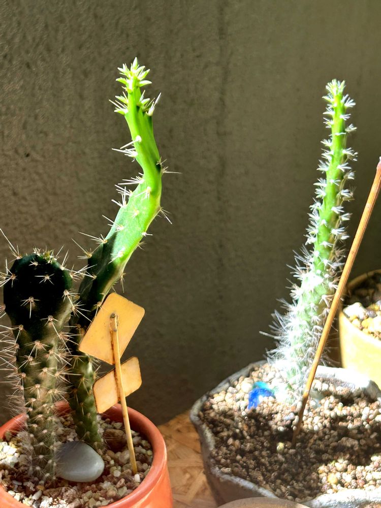 実生サボテン(ウチワサボテン?)の先っぽから、新芽が出てきました🌵