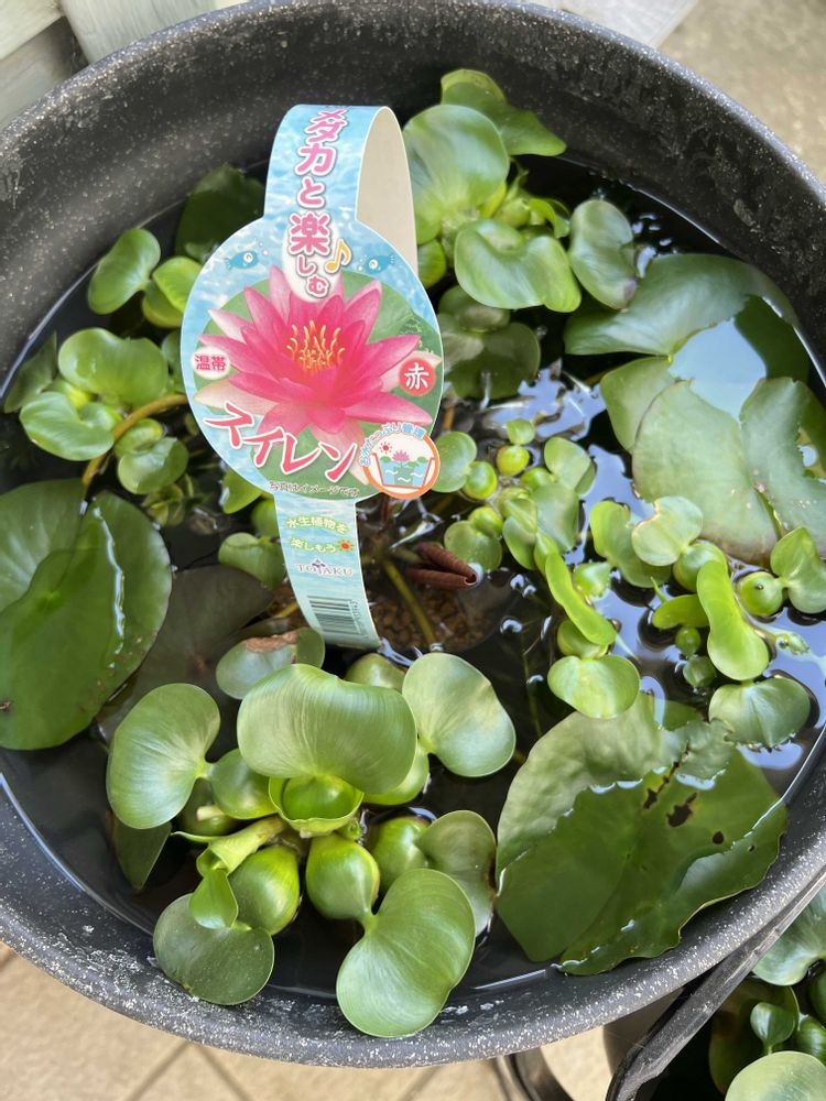 メダカの鉢に買って入れました