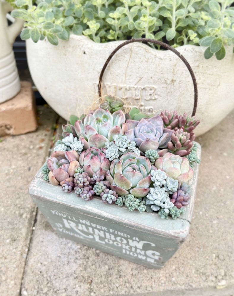 ボリュームたっぷりの多肉パックで木箱にもできました