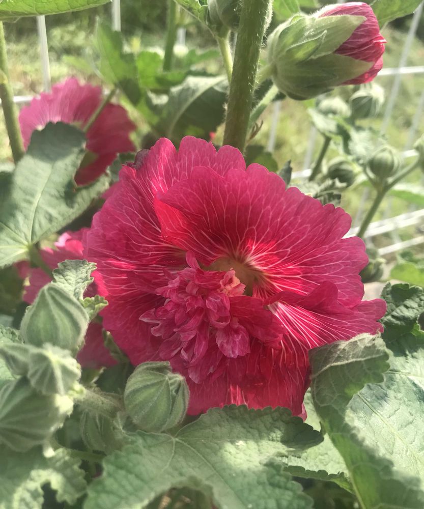 タチアオイ、シックな赤で透明感のある花びらが素敵ですね💓