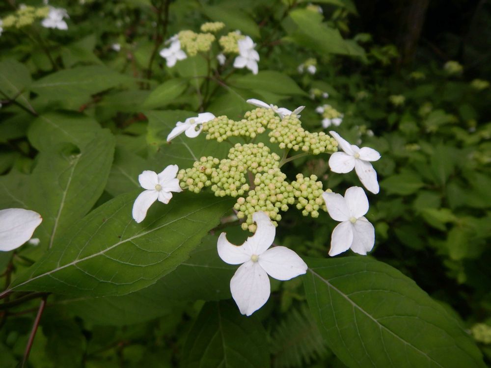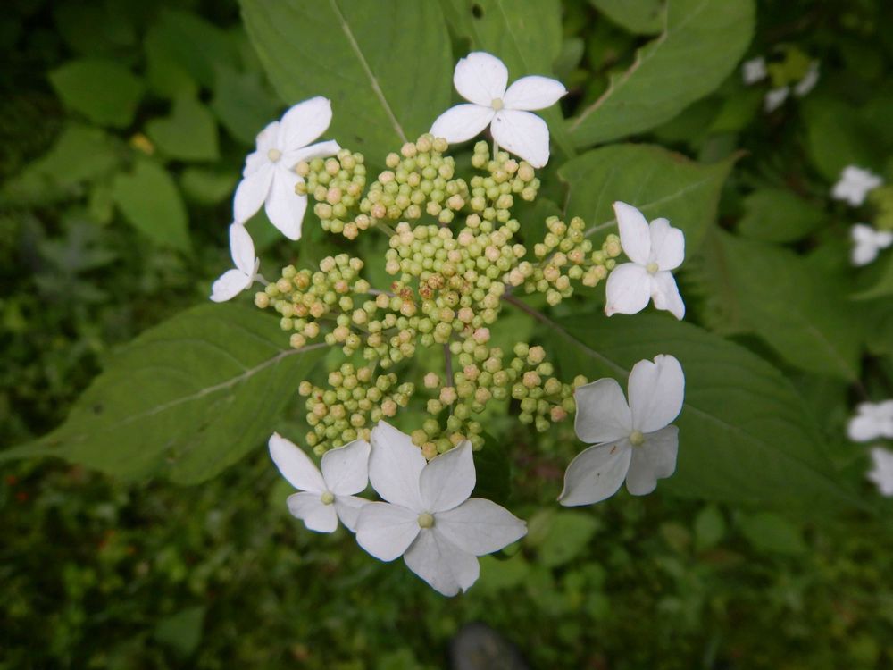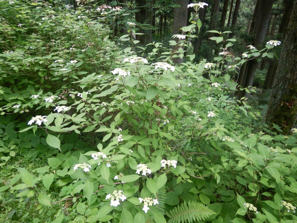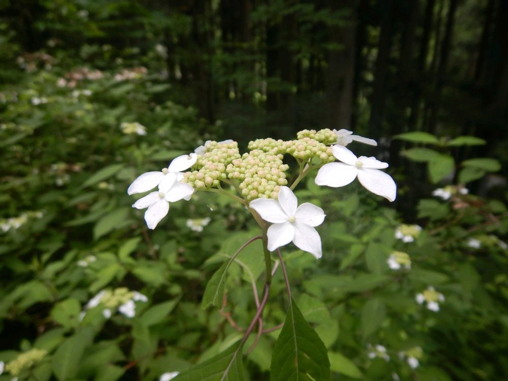 奥三河の山でヤマアジサイが満開です。この地方ではヤマアジサイの色は白のみ。